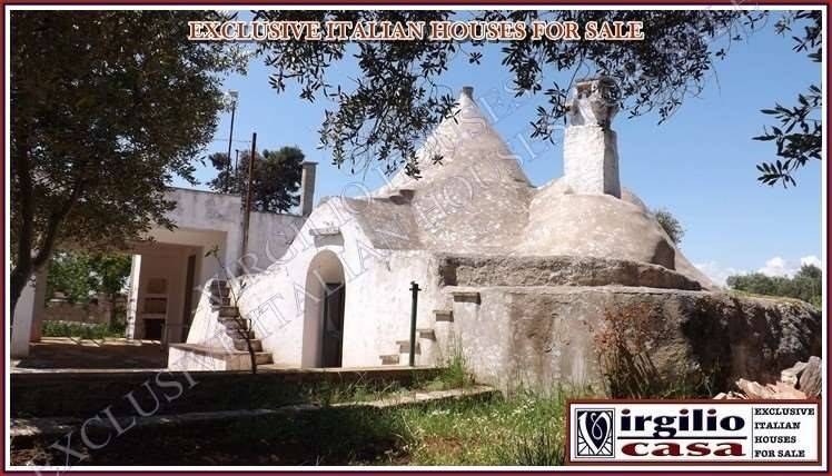 In Territorio di Martina Franca ma distante appena 1 km dal centro abitato di Villa Castelli , 3 corpi di fabbrica in posizione panoramica con vista mare composta da un grande trullo a 4 coni in ottime condizioni di circa 30 mq , costruzione annessa di 50mq c.a con forno e barbecue esterni, e alle spalle distante un paio di centinaia di metri piccolo trullo saraceno con accesso indipendente.